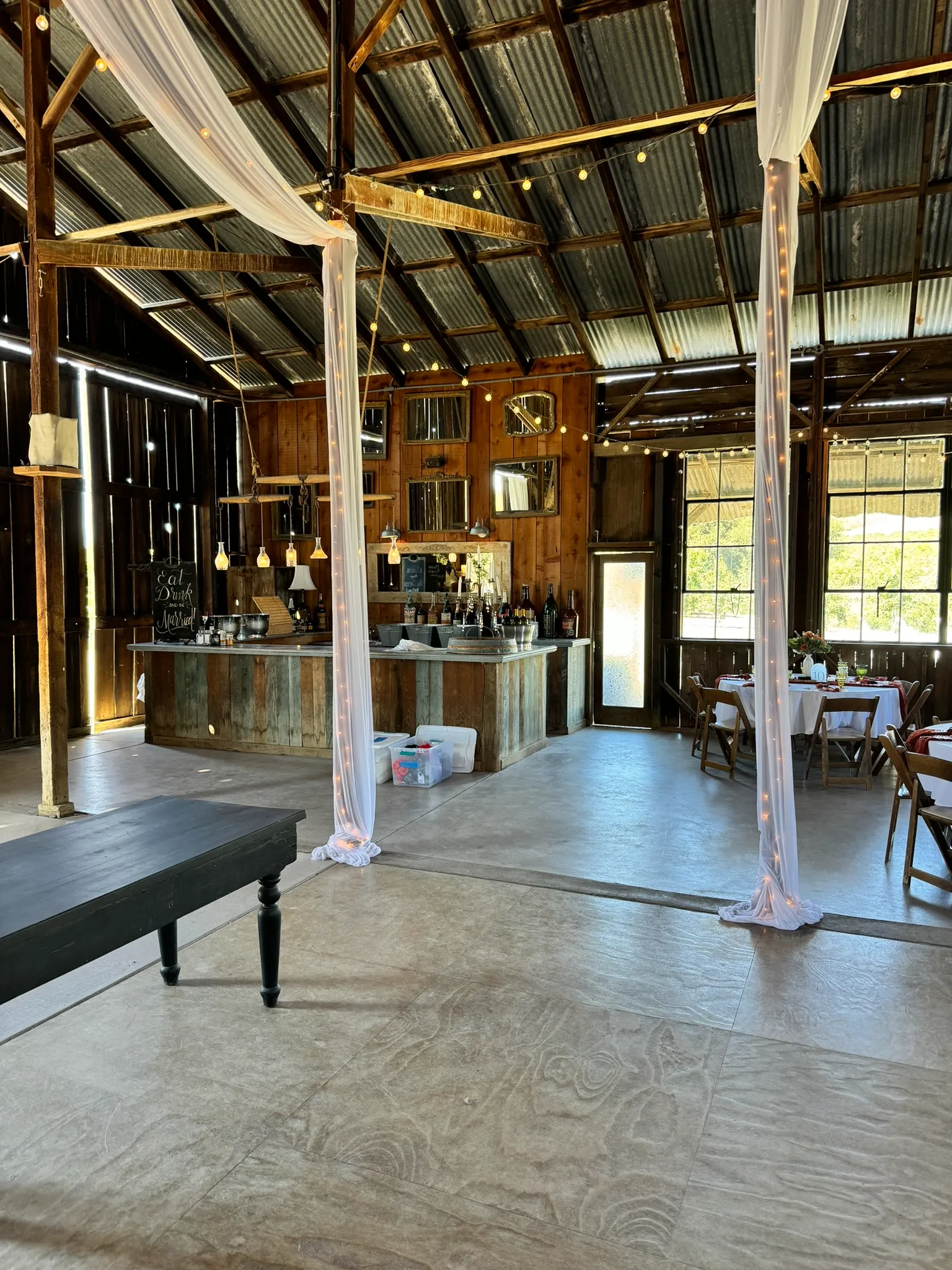 That is exactly how we approach it. We evaluate where guests will naturally gather, how the ceremony transitions into cocktail hour, where the reception center of gravity will sit, and what bar configuration will keep service efficient without interrupting the openness of the venue.